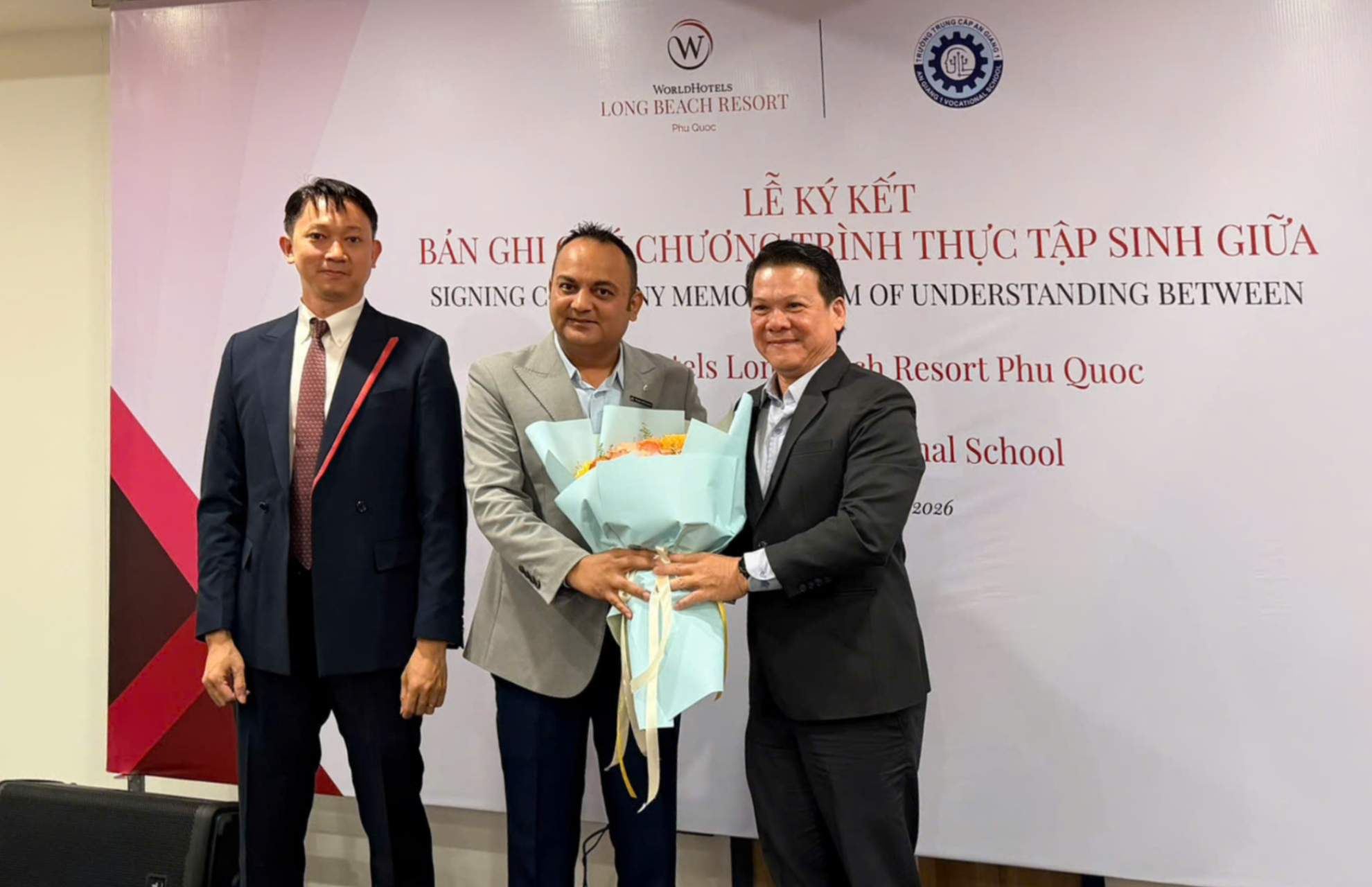 On March 18, 2026, at WorldHotels Long Beach Resort Phu Quoc (WHLBRPQ), a Memorandum of Understanding (MOU) signing ceremony was officially held between the resort and An Giang 1 Vocational School, marking a significant milestone in bridging academic training with real-world practices in the hospitality and tourism industry.
