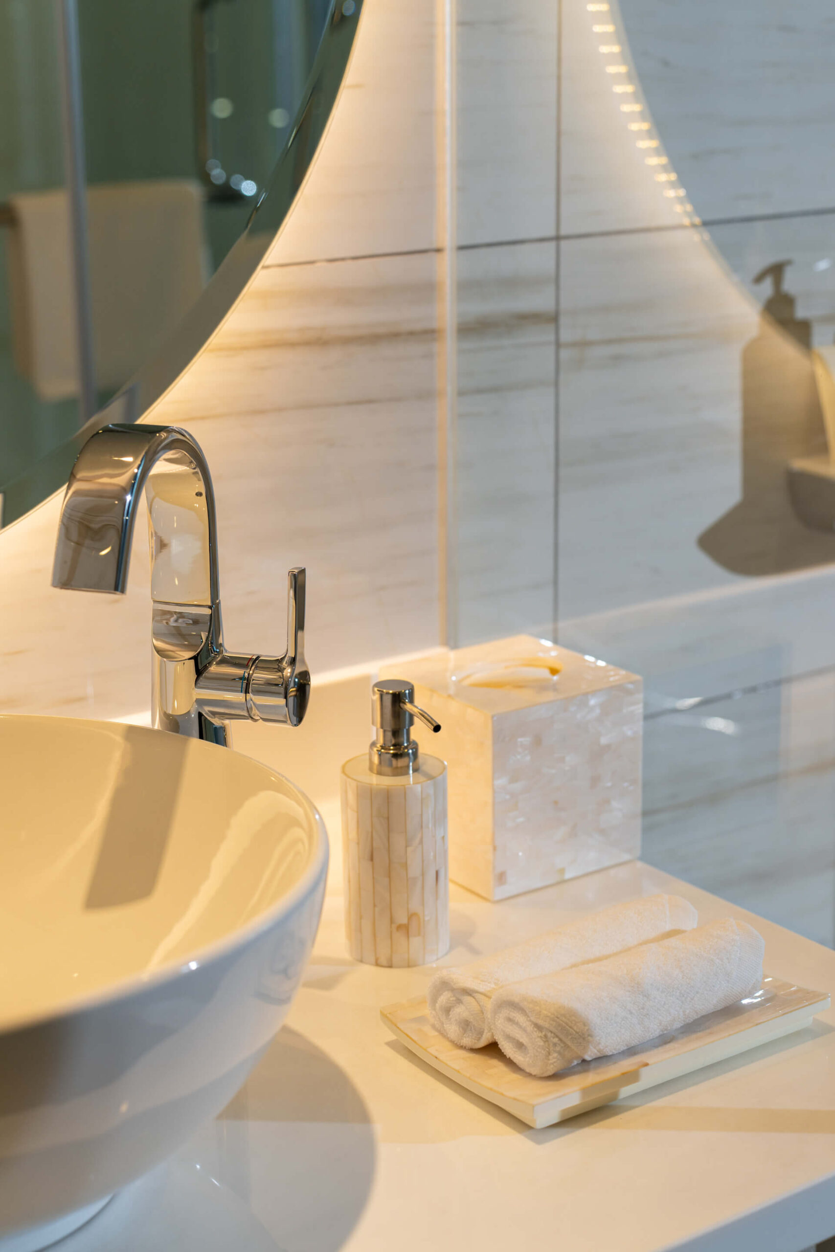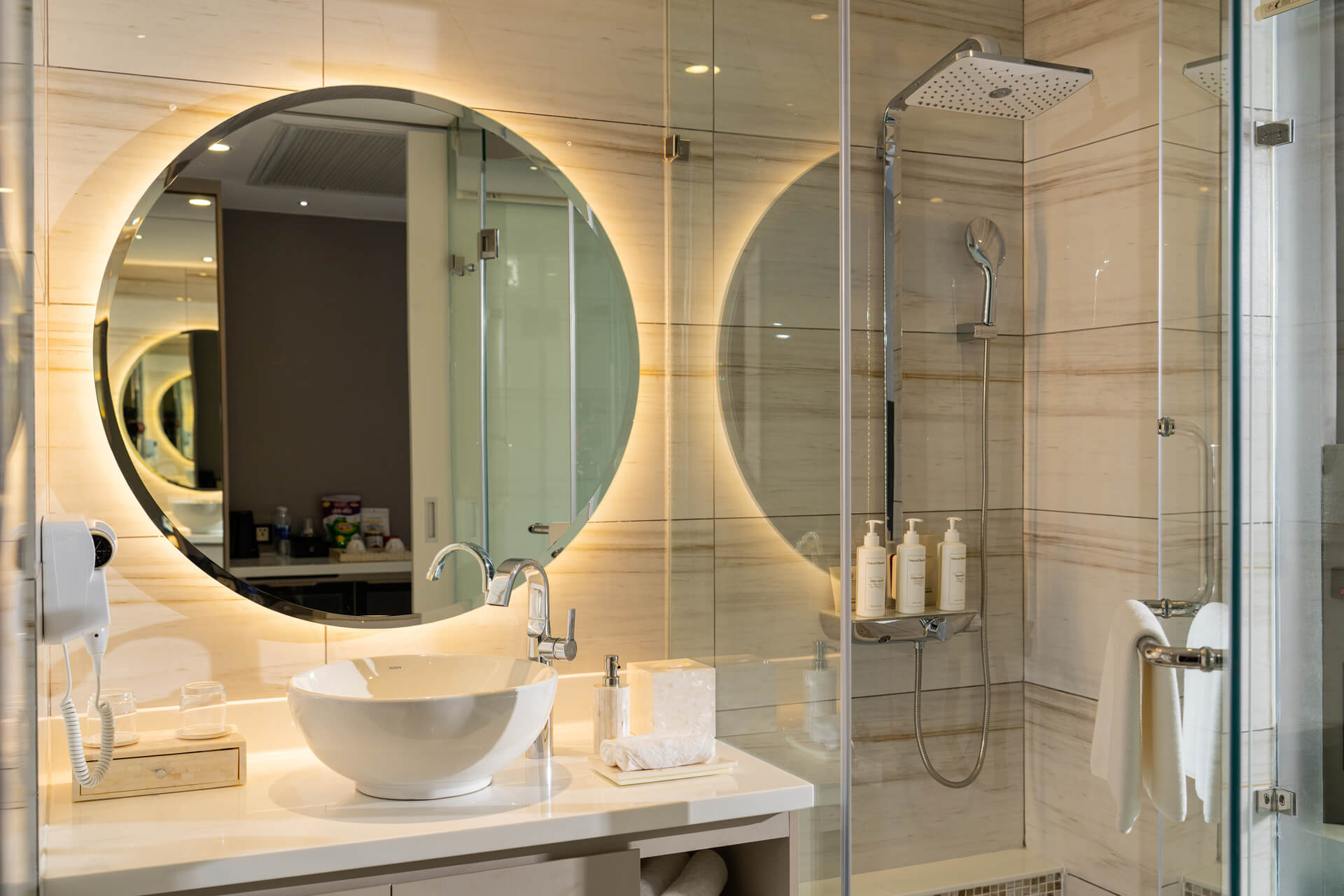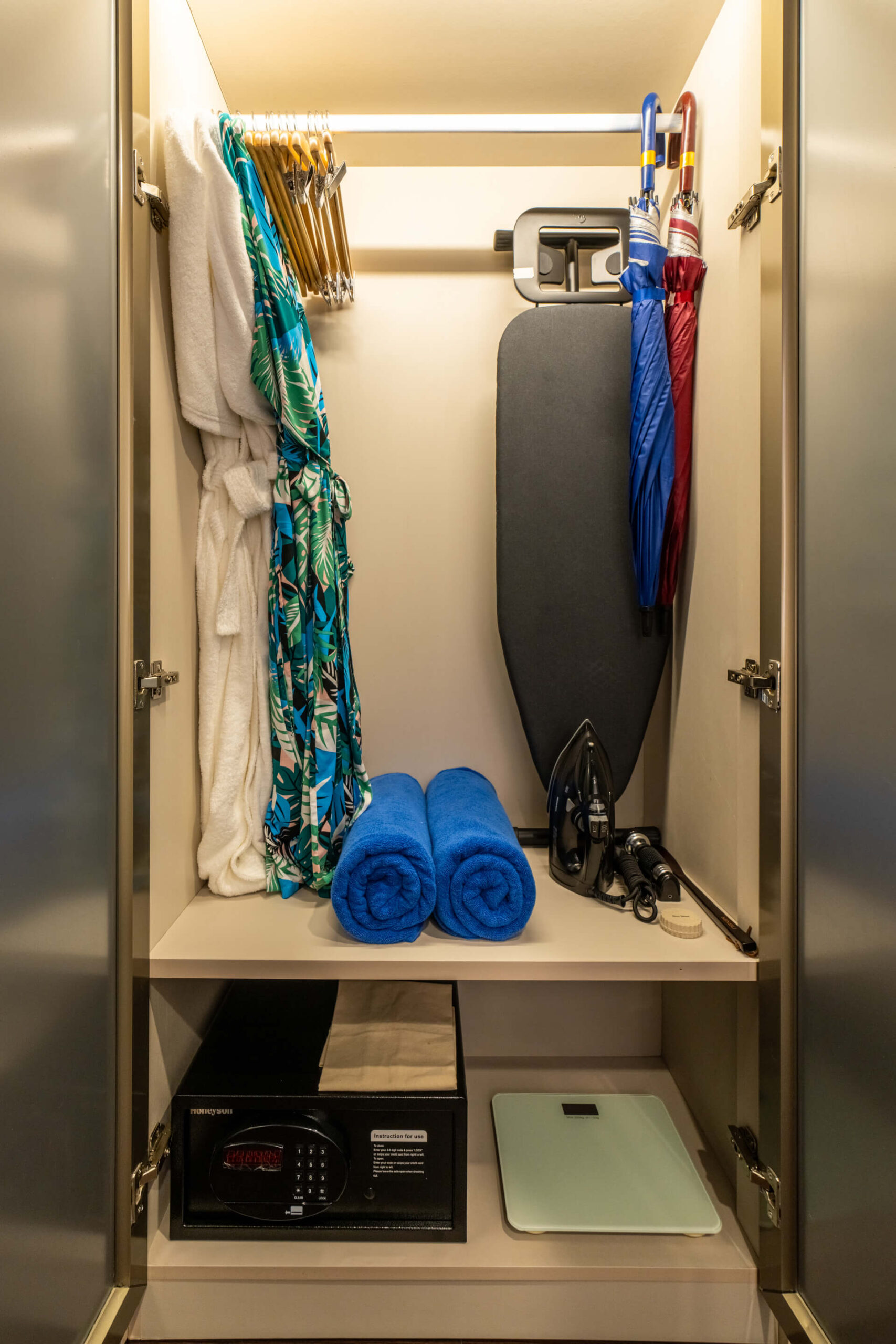 Được thiết kế để phục vụ cả gia đình hoặc nhóm bạn đồng hành, phòng Executive mang đến sự tiện nghi toàn diện với bộ vật dụng cá nhân cao cấp – bao gồm đầy đủ sản phẩm chăm sóc cơ thể, bàn chải, lược, túi vệ sinh và các chi tiết chu đáo khác. Tủ quần áo được trang bị kỹ lưỡng với áo choàng tắm, bàn là, cân cá nhân, dép đi biển và túi giặt, giúp mỗi thành viên có thể tận hưởng kỳ nghỉ thoải mái như tại chính ngôi nhà của mình.