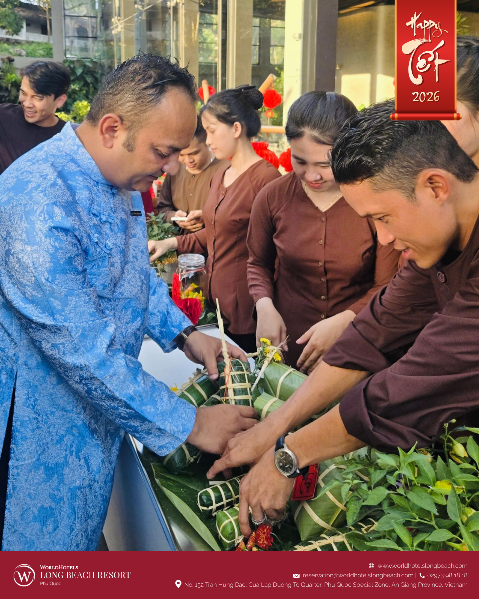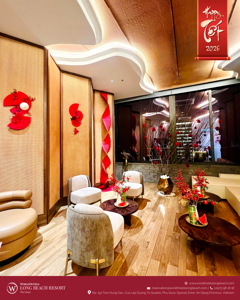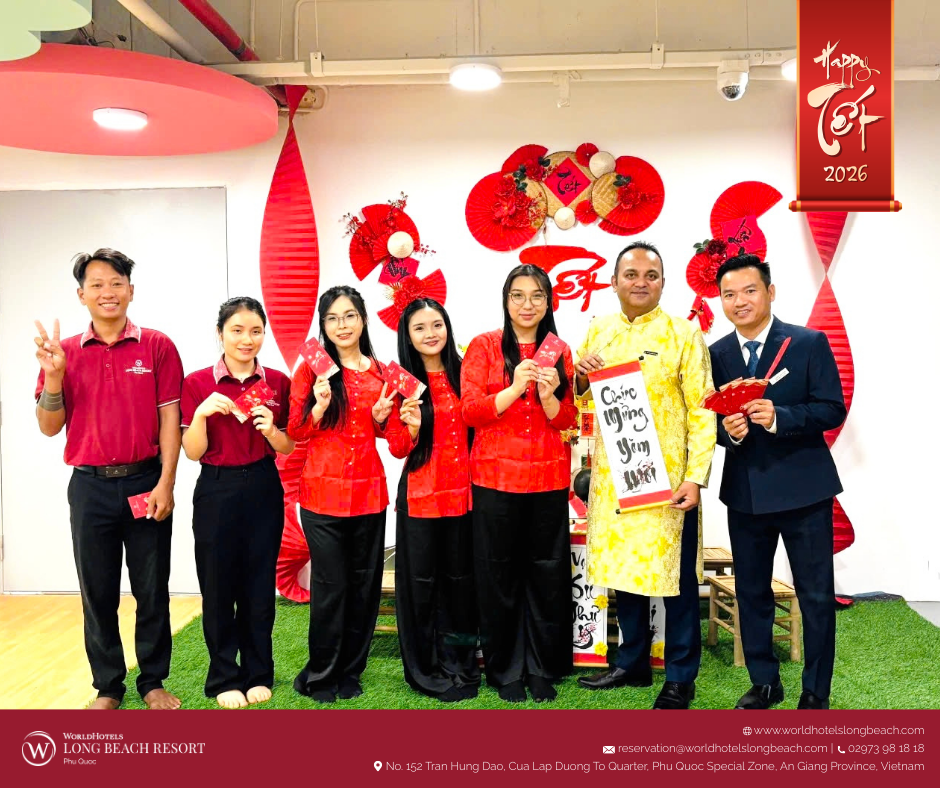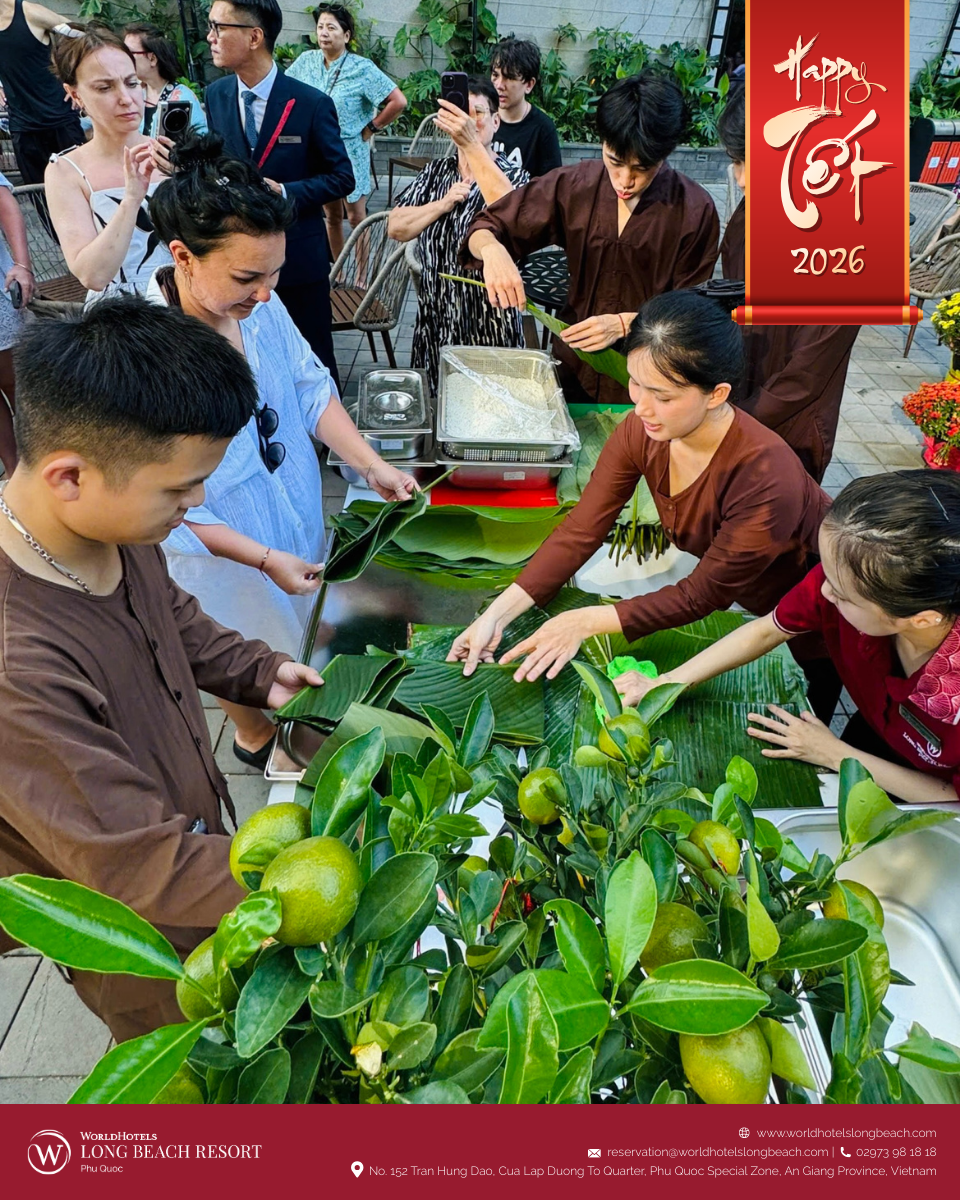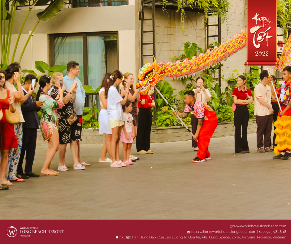 Tại WorldHotels Long Beach Resort Phú Quốc, tinh thần Tết cổ truyền được tái hiện qua chuỗi hoạt động được chuẩn bị chỉn chu, giúp du khách từ khắp nơi trên thế giới không chỉ quan sát mà còn trực tiếp tham gia, cảm nhận và tận hưởng mùa xuân Việt Nam trong một không gian nghỉ dưỡng sang trọng và thư thái.