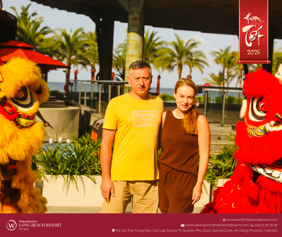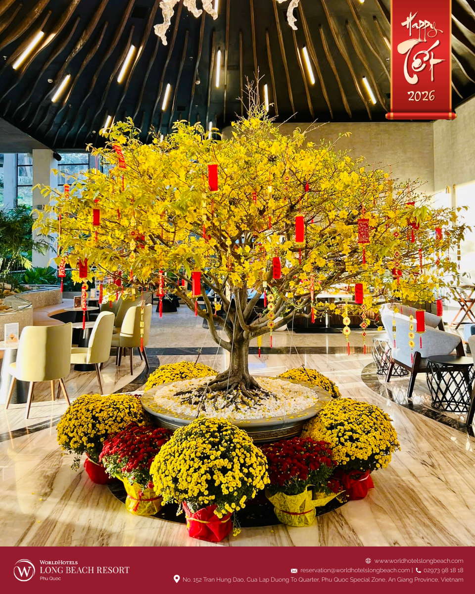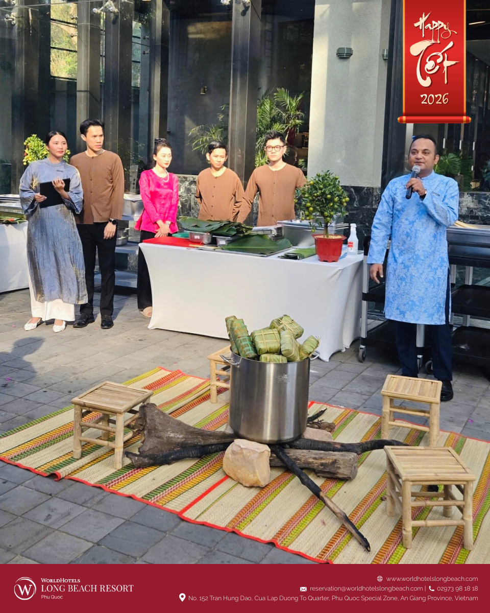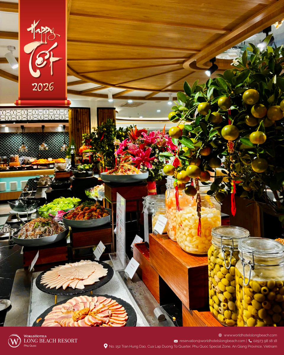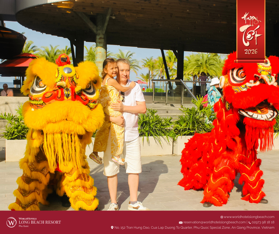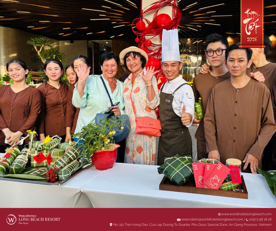 Tại WorldHotels Long Beach Resort Phú Quốc, tinh thần Tết cổ truyền được tái hiện qua chuỗi hoạt động được chuẩn bị chỉn chu, giúp du khách từ khắp nơi trên thế giới không chỉ quan sát mà còn trực tiếp tham gia, cảm nhận và tận hưởng mùa xuân Việt Nam trong một không gian nghỉ dưỡng sang trọng và thư thái.